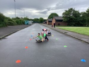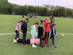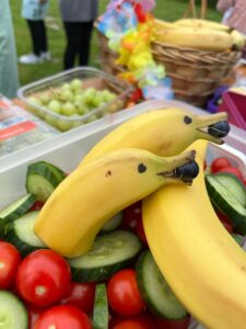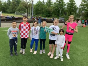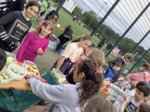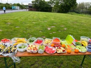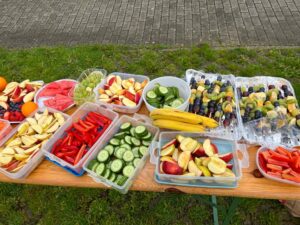 Im Mai fand unser Sport- und Spielefest statt. Hier stehen Spaß und Teamgeist im Vordergrund. An verschiedenen Stationen bewiesen die Kinder ihr Geschick und ihre Beweglichkeit. Nach der Kraftanstrengung an den Stationen konnten sich alle an dem leckeren und gesunden Buffet stärken. Einen lieben Dank geht an die Eltern, die so tolle Snacks vorbereitet und auch Trinken gespendet haben.